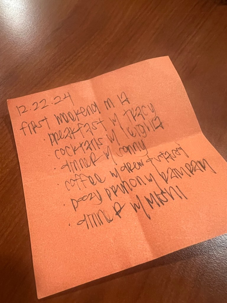 we alternated reading each joyous memory from 2024 out loud. some made us laugh until our sides hurt while others stung due to shifts in life circumstances – so fucking much can change in just a single year. there was something so deeply intimate and comforting about reading each memory aloud in the presence of a person who walked alongside me all of last year (and many years before that). i would certainly recommend doing this exercise with a best friend, partner, child, parent, sibling or anyone else important to you. it can definitely highlight the best moments, the things that need adjusting and the growth that is to come.