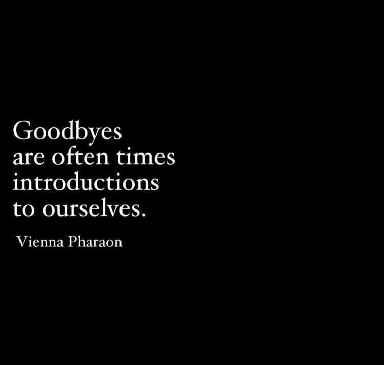 “goodbyes are often times introductions to ourselves.” -vienna pharaon