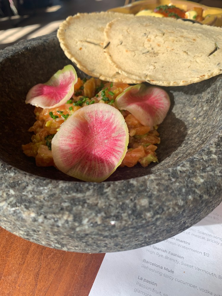 salmon tartar tasted even better than it looks! it being served with fresh corn tortillas was the perfect addition.