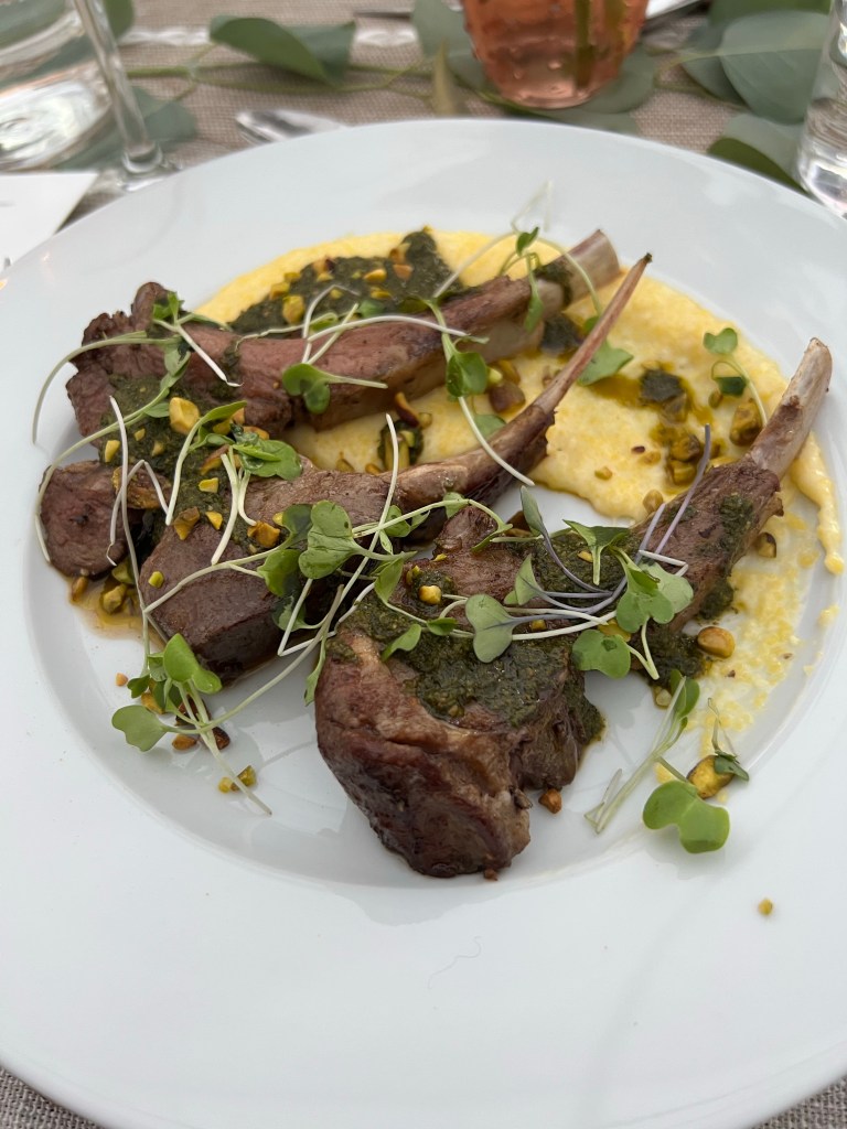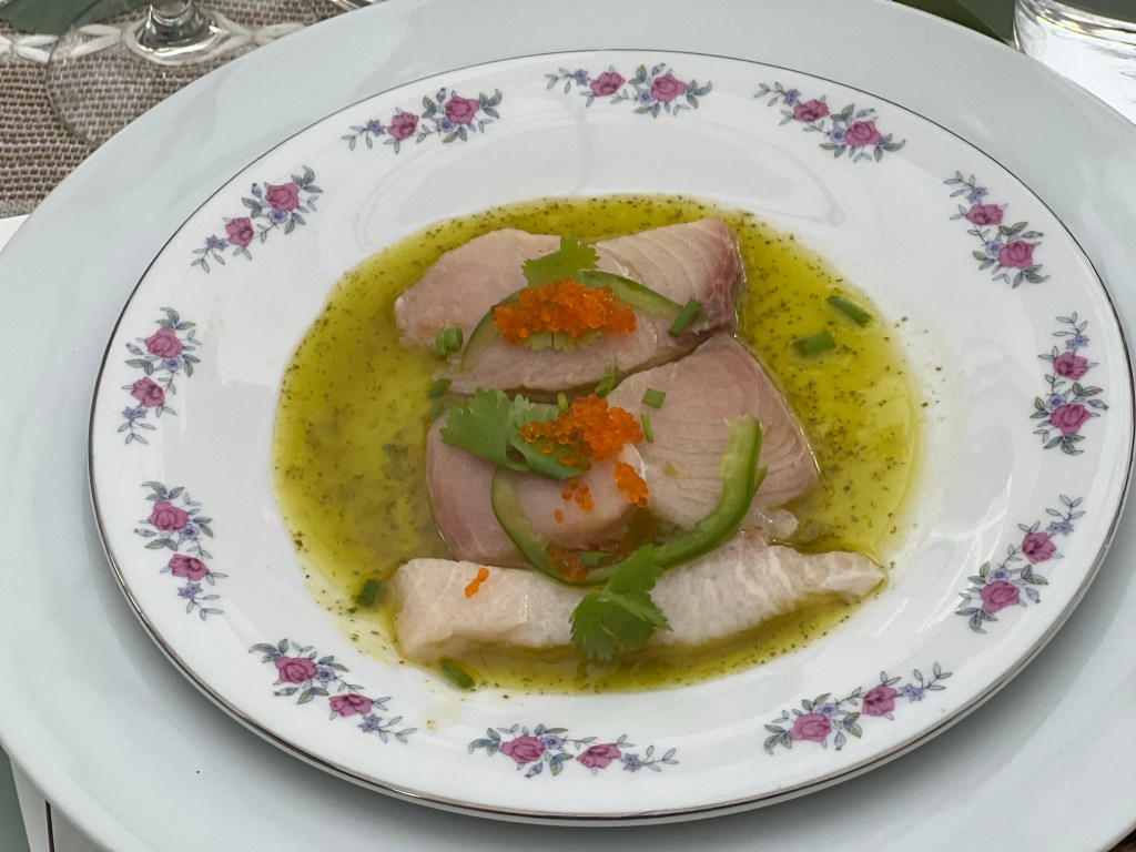 for our first course, we had hamachi carpaccio. i am a seafood snob – trust me when i tell you this hamachi melted in my mouth like butter! it was served with one of the best white wines i have had in a long time – leo steen chenin blanc 2020. i will be ordering a case before my next dinner party.