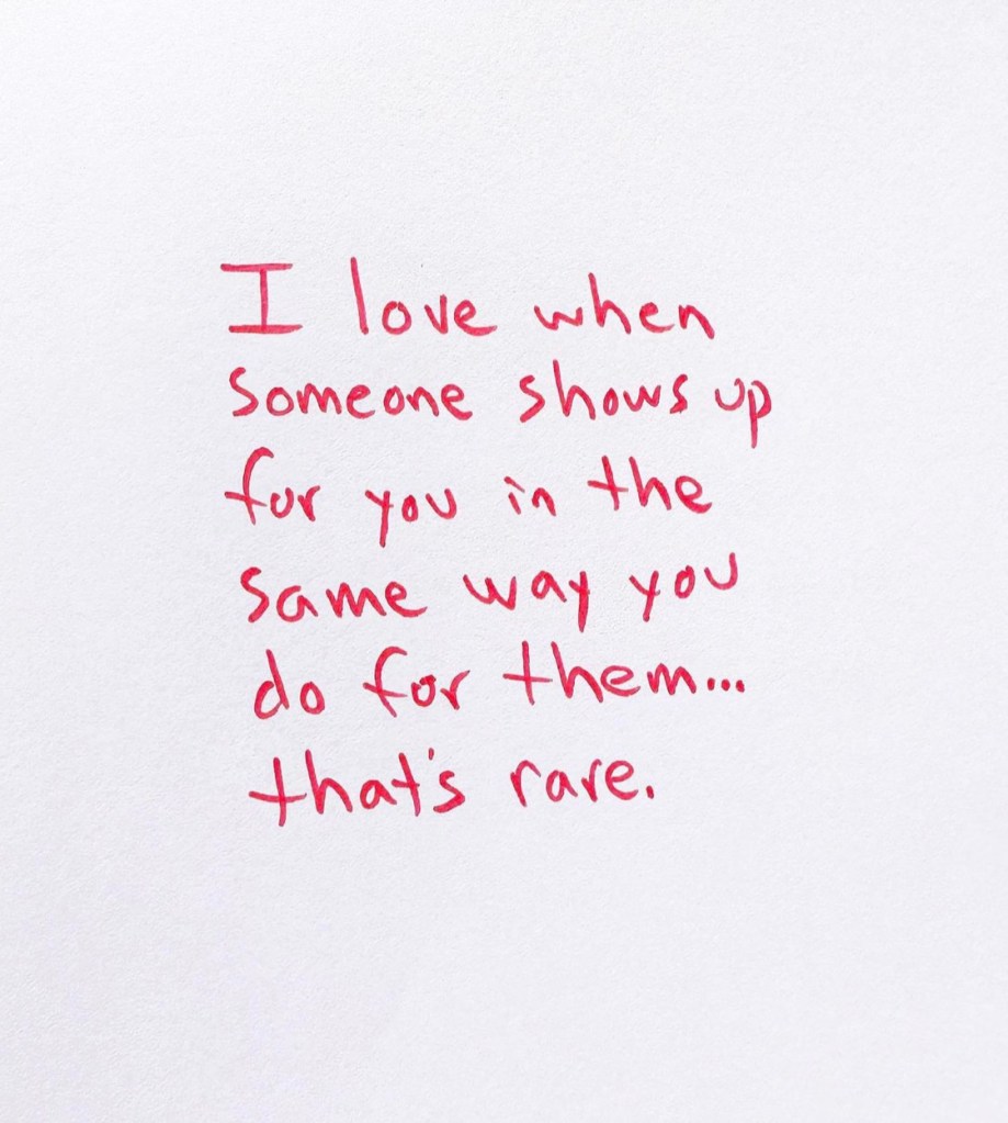 “i love when someone shows up for you in the same way you do for them…that’s rare.”