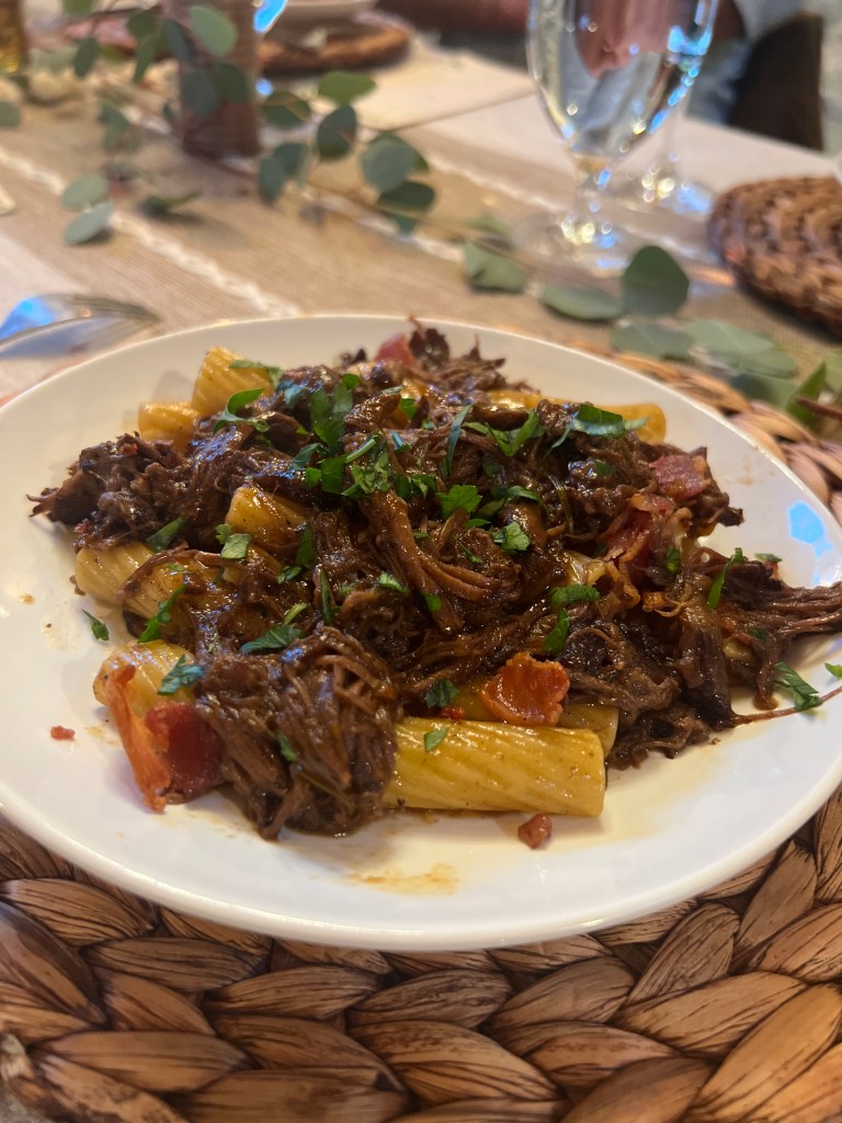 fifth course – rigatoni with braised short rib ragu – served with wilson snake patch petite sirah 2019