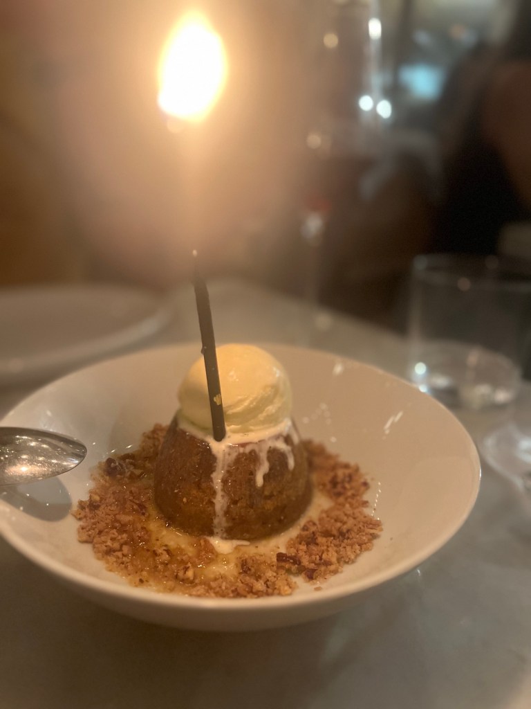 we were between a few different options for dessert. one of the only areas where alan and i differ is there is no such thing as too much chocolate for him. that certainly is not the case for me. one that spoke to us both was the date cake and our server highly recommended it.