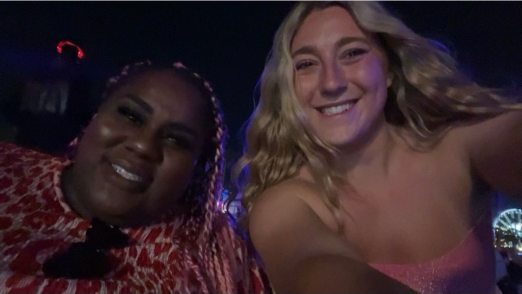 next, i rapped along to lil uzi, swayed to peso pluma and was entranced by lana del rey – especially when she brought out jon batiste and billie eilish. lana and billie doing “ocean eyes” together will be seared in my memory forever. an added bonus? running into heidi klum in vip and watching her be an absolute gem to any person that walked up to her and/or asked for a photo. and yes – she is just as stunning in person. the icing on the cake? getting to see one of my favorite students from webb. julia is a fellow music junkie.