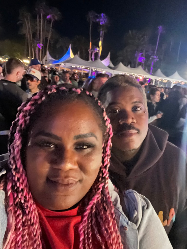 friday was phenomenal. i started off at main stage in vip and listened to sabrina carpenter. she has pipes! next, i met up with anthony to see brittany howard. many people know her from the alabama shakes. this was arguably the best set of the day. her connectivity with her fans? the rawness of her voice? how soulful she was? UNMATCHED. at that set, we met this adorable australian couple. they were in their 50s and were at the set as a duo but were at the festival with their three kids (26, 23 and 16). you could feel the love radiating from them. the husband wanted to know how many coachellas we each had been to and was shook when i said this was my eighth. we exchanged stories about favorite sets from last year and all of us couldn’t stop talking about metro boomin. i will never get over how music truly brings people together in such a special way.