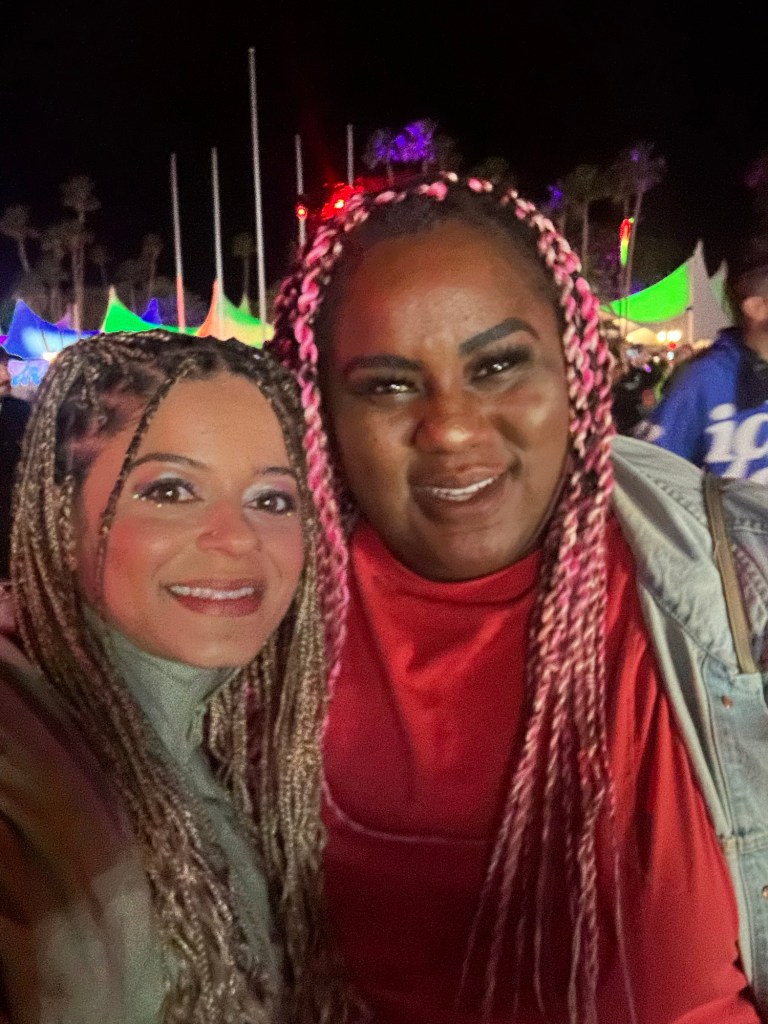 sunday was so special. i started with carin leon and am now a fan. next, i frolicked over to the rose garden for a little relaxation and was able to enjoy victoria monet’s set from there. this girl is TALENTED. i also can’t pretend i didn’t dance on my own when she brought out sexyy red. next, i met up with tay’s group and moved way closer to the stage for tems. her voice is as smooth as butter in person. she is also DROP DEAD GORGEOUS. i don’t know that i’ve seen a more humble and grateful performer. wiz kid and justin beiber coming out? i think the crowd could have collectively fainted. next, we went over to see jhene aiko. while i’ve seen her do a song or two, this was my first time witnessing a full set. she was incredible. i was already sold before she brought out big sean, tyga, saweetie or omarion.