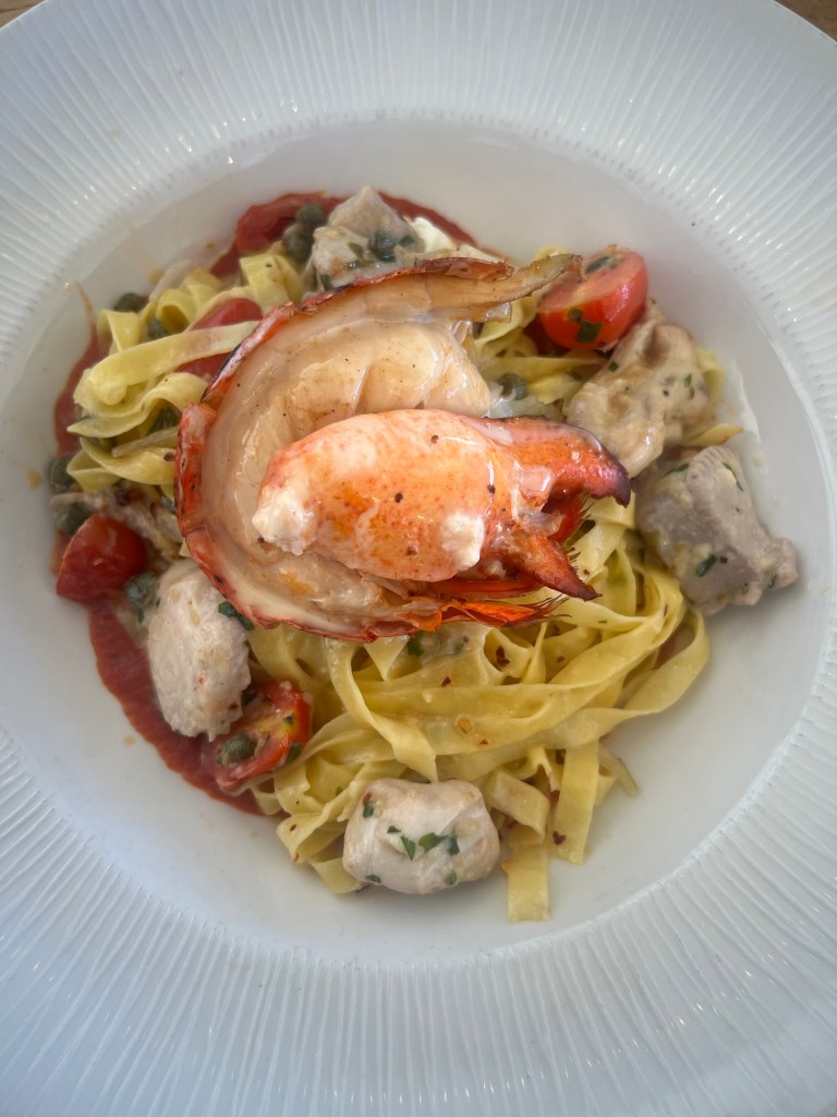 for my main course, i had the fish and lobster pasta. i thoroughly enjoyed the freshness of the fish, the buttery lobster, the saltiness of the capers and the delightful sauce. i pretty much never say no to a savory dish. the meal was substantial without me feeling stuffed. there is something great about knowing how the meal we were eating was locally sourced. after dinner, we took a moment to take on the water and it certainly didn’t disappoint.