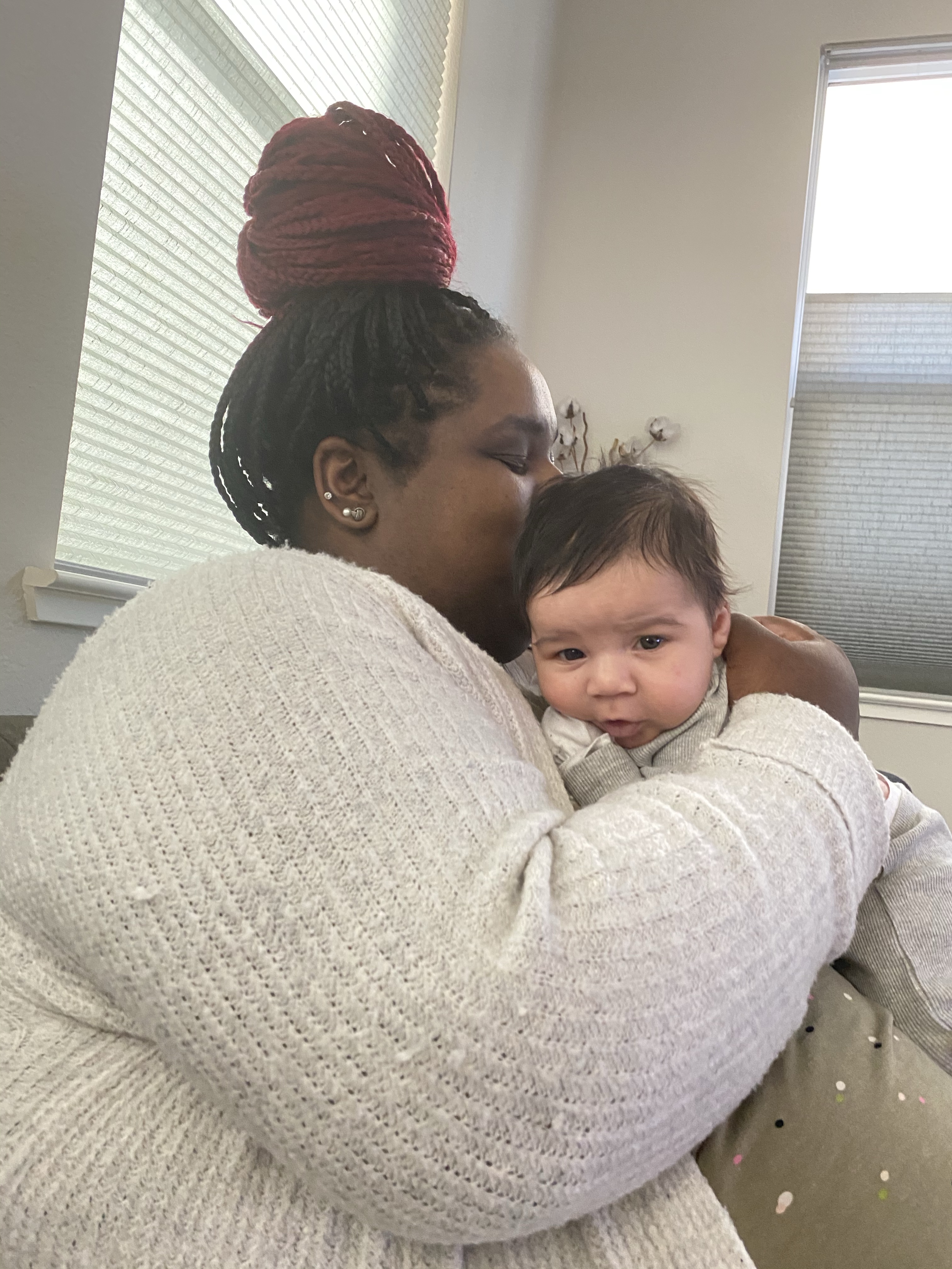 i arrived on a monday afternoon after a two week quarantine. i made sure to shower before getting on the road, not spray on any perfume (as not to agitate his sensitive skin) and made no stops en route. as soon as i arrived, i was overwhelmed. who do i hug first? will the baby be open to snuggle time with his auntie? will he have some recognition when it comes to my voice since his mom and i facetimed five days per week during her second and third trimester plus a few times a week since he’s exited the womb? enzo’s dad and i quickly unpacked things i brought that needed refrigeration and he took my suitcase to the guest bedroom. i washed my hands, rolled up my sleeves and was ready for the baby. as soon as i held him, i was in love.