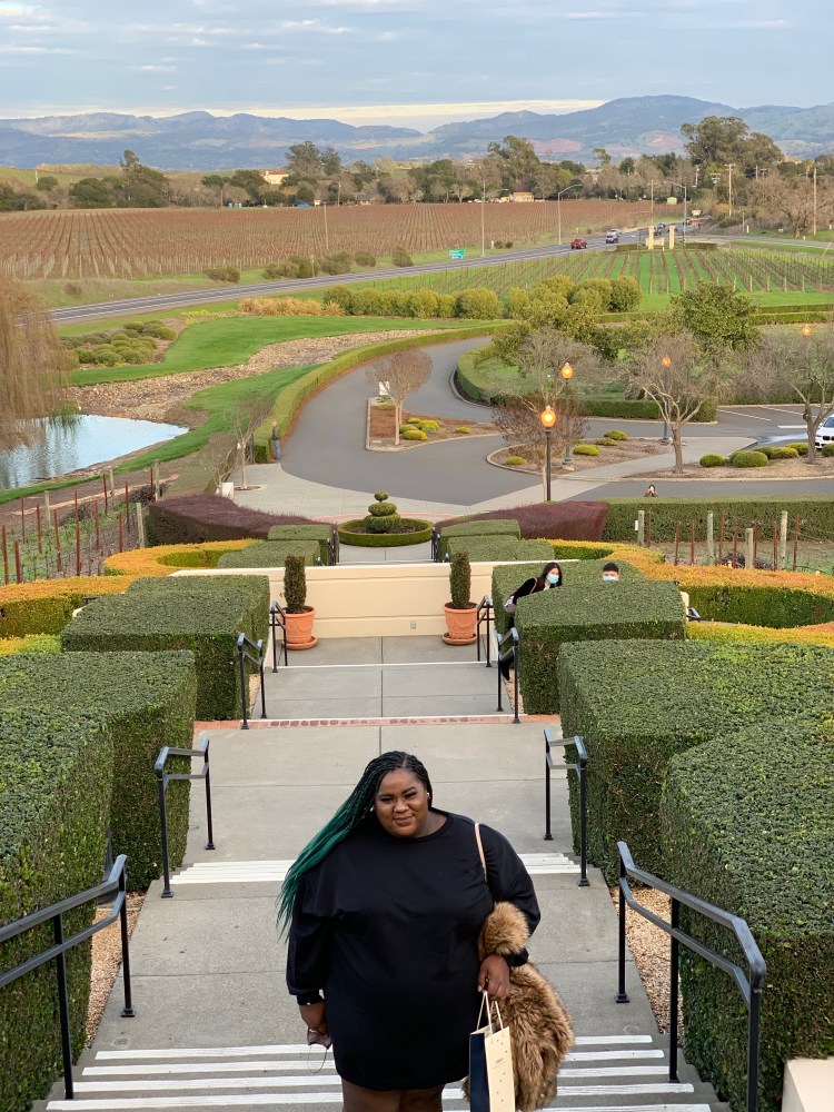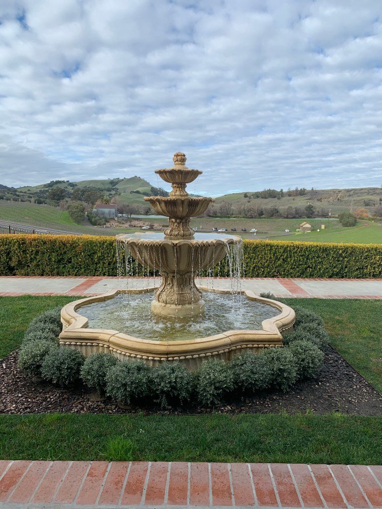 we realized we were ahead of schedule for our reservation at domaine carneros so we pit stopped at madonna estate. ibi loves a good pinot noir and they have one of my favorites. unfortunately, it was reservation only to be mindful of numbers due to covid. however, when bob realized it was me (i have visited quite a number of times, including in november for kendall’s birthday), he graciously accommodated us. i was sure to tell him we didn’t need a formal tasting – a bottle of pinot noir and a couple of glasses would do the trick. i knew i was going to be seeing marilena the next day for coffee so i picked her up a bottle of their rosé – it’s made with a pinot grape and is subtly sweet. our visit to madonna was short and sweet. i made sure to set an alarm so we weren’t late to our reservation at domaine carneros. with ibi and i both loving bubbles as much as we do, i couldn’t wait to take her. the weather was absolutely perfect!